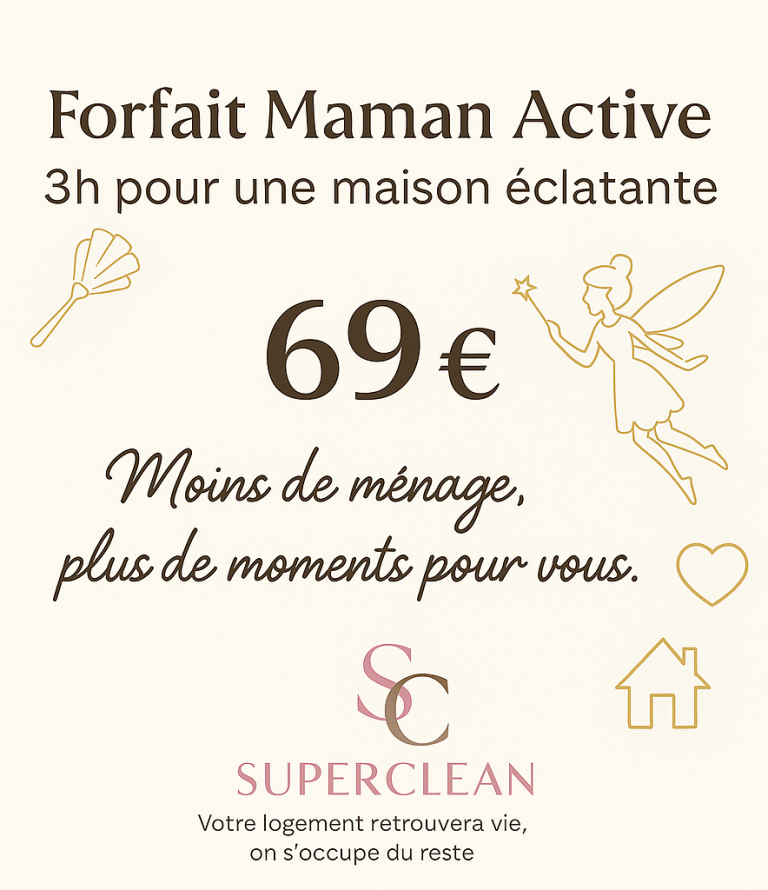 Parce que vos journées filent à toute vitesse, Superclean vous offre un véritable souffle d’air. Avec le Forfait Maman Active, on prend en charge votre intérieur pendant que vous prenez soin du reste : vos enfants, votre travail, votre vie.